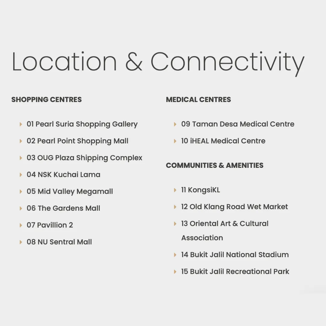 Easy access to Mid Valley City, Bangsar South, KL City Centre, KL Sentral within 15 mins driving